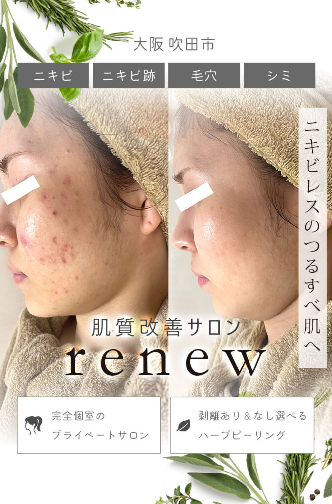 肌質改善サロンrenewは一人ひとりのお肌の悩みと丁寧に向き合います。